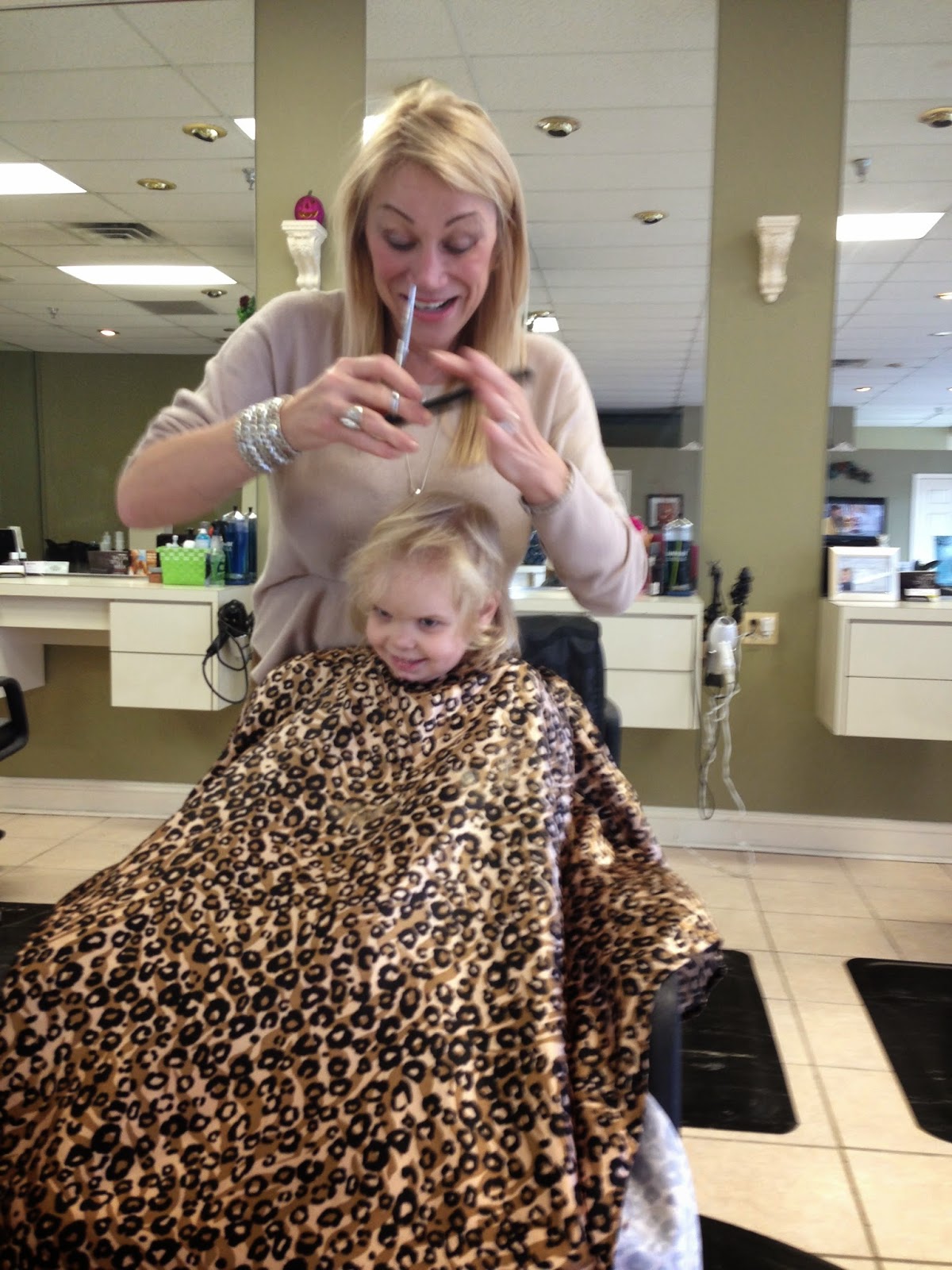 | Getting a haircut at Golden Shears, she loves going there which is good because her hair grows so fast |